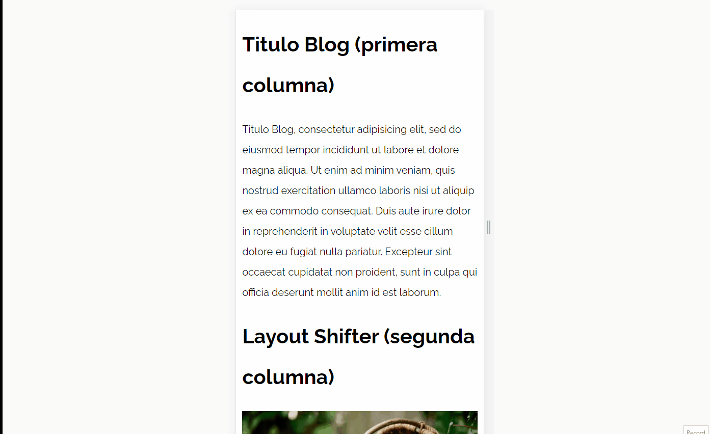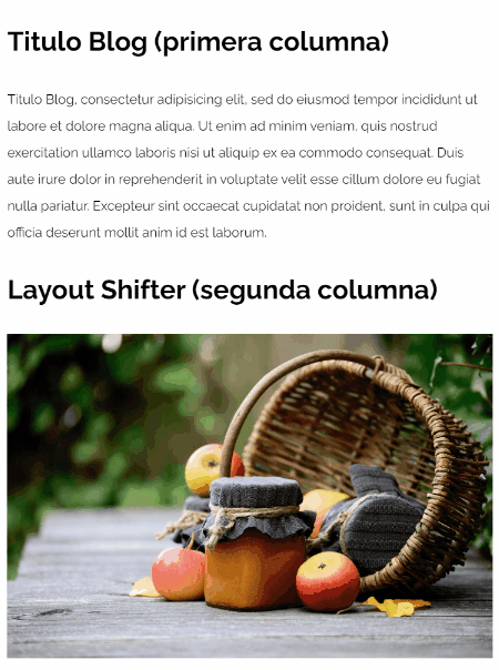 en resumen en tamaños inferiores el titulo se va desplazar a la parte inferior, y en tamaños mas grandes se va a posicionar de lado derecho del contenido, layout shifter entra en acción en cada Media Querie, cambiando la ubicación de los elementos. esta es la función de layout shifter, cambiar de diseño dependiendo de cada media querie.